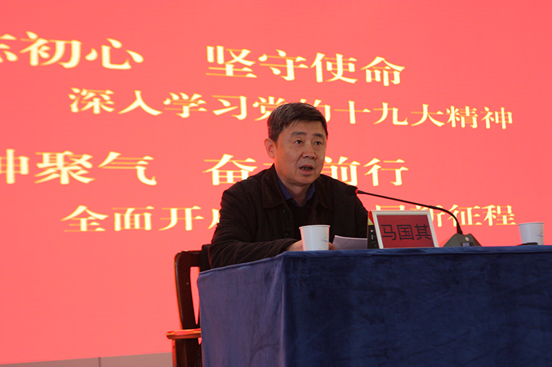 為進(jìn)一步推進(jìn)黨的十九大精神在路橋公司落地生根,2018年1月11日上午,聯(lián)投集團(tuán)黨委委員、紀(jì)委書(shū)記馬國(guó)其,前往路橋公司,為黨員干部職工作了題為《不忘初心 堅(jiān)守使命 深入學(xué)習(xí)黨的十九大精神 凝神聚氣 奮力前行 全面開(kāi)啟路橋發(fā)展新征程》的專題黨課宣講。