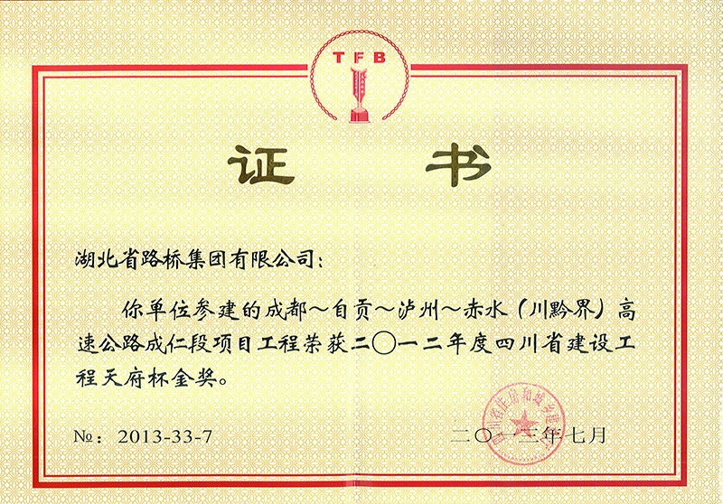 2012年四川省建設工程天府杯金獎