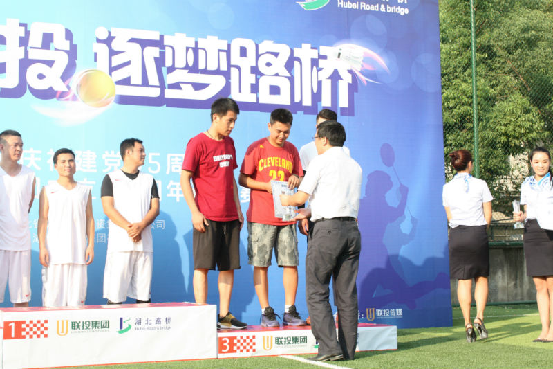 金秋九月彩旗飄揚(yáng),運(yùn)動賽場青春激蕩!兩天的角逐,美好而短暫,為每一個聯(lián)投人留下了"運(yùn)動、健康、快樂"的美好回憶。9月11日下午4點(diǎn)半,伴隨著明媚陽光,聯(lián)投集團(tuán)第一屆 "激情聯(lián)投 逐夢路橋"球類邀請賽閉幕式在路橋集團(tuán)足球場舉行,為本次邀請賽畫上了圓滿句號。聯(lián)投集團(tuán)綜合辦公室主任、工會副主席項益明,聯(lián)投集團(tuán)建管部部長高俊普、副部長付漢江,聯(lián)投集團(tuán)綜合辦公室副主任王進(jìn)力等領(lǐng)導(dǎo)出席此次閉幕式并為獲獎集體頒獎,路橋集團(tuán)工會主席馬建剛主持了閉幕式。