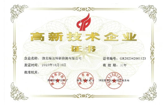 近日,湖北路橋瑞達(dá)檢測公司收到由湖北省科學(xué)技術(shù)廳、湖北省財(cái)政廳、國家稅務(wù)總局湖北省稅務(wù)局共同頒發(fā)的“高新技術(shù)企業(yè)”證書,這是瑞達(dá)檢測公司首次榮獲此項(xiàng)認(rèn)定,標(biāo)志著瑞達(dá)檢測公司在科技創(chuàng)新和產(chǎn)業(yè)升級(jí)方面取得了重要突破,正式邁入國家高新技術(shù)企業(yè)行列。