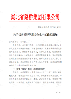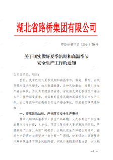 汛情就是命令,責(zé)任重于泰山。湖北路橋迅速發(fā)布《關(guān)于切實做好汛期安全生產(chǎn)工作的通知》《關(guān)于切實做好夏季汛期和高溫季節(jié)安全生產(chǎn)工作的通知》,安排部署加強汛期安全防范工作。各分子公司、各項目積極響應(yīng),按照“三管三必須”要求,抓好汛期安全風(fēng)險防控工作,嚴(yán)格落實安全生產(chǎn)責(zé)任,狠抓安全防范措施落實,堅決筑牢防汛“安全堤”。全體員工繃緊防汛這根弦,堅決克服麻痹、僥幸心理,以“時時放心不下”的責(zé)任感,落細落實各項防汛措施,確保安全度汛。