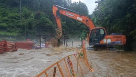 由于特大暴雨肆虐,加上項目四面環(huán)山中間一條河的特殊地理條件,導(dǎo)致洪水侵襲項目部。五峰普通公路建設(shè)養(yǎng)護總承包01工程項目迅速啟動抗洪救災(zāi)預(yù)案,立即組織人員進行搶險,項目部全體管理人員及工程隊施工人員共計100名投入到搶險救災(zāi)中,迅速疏浚項目周邊排水管道。同時,現(xiàn)場還形成監(jiān)控組、巡視組、交通疏導(dǎo)組,在搶險的同時也在全力保護人員安全,做到不漏一人,不漏一械。