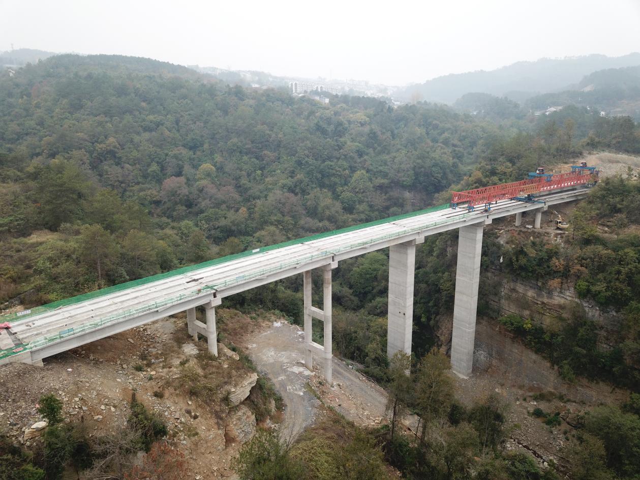 遠安縣磷礦專用路項目位于宜昌市遠安縣嫘祖鎮(zhèn)境內(nèi),標(biāo)段內(nèi)共計4座橋梁,總長664.32米,設(shè)計預(yù)制梁共109片。本次架設(shè)的庵溝2號大橋全長190.08米,上部結(jié)構(gòu)采用3×30+3×30m預(yù)應(yīng)力混凝土T梁,先簡支后連續(xù),全橋共2聯(lián),設(shè)計30mT梁30片,采用JQ180-40型架橋機進行T梁架設(shè),其2#、3#墩身設(shè)計為薄壁空心墩,高度分別為49.6米和47.6米。
