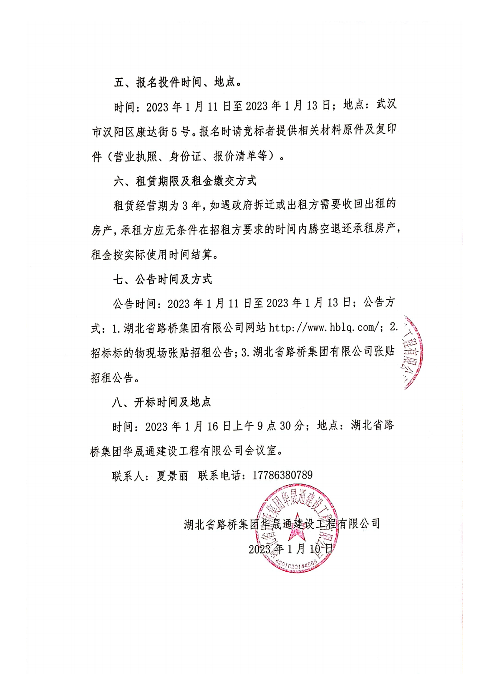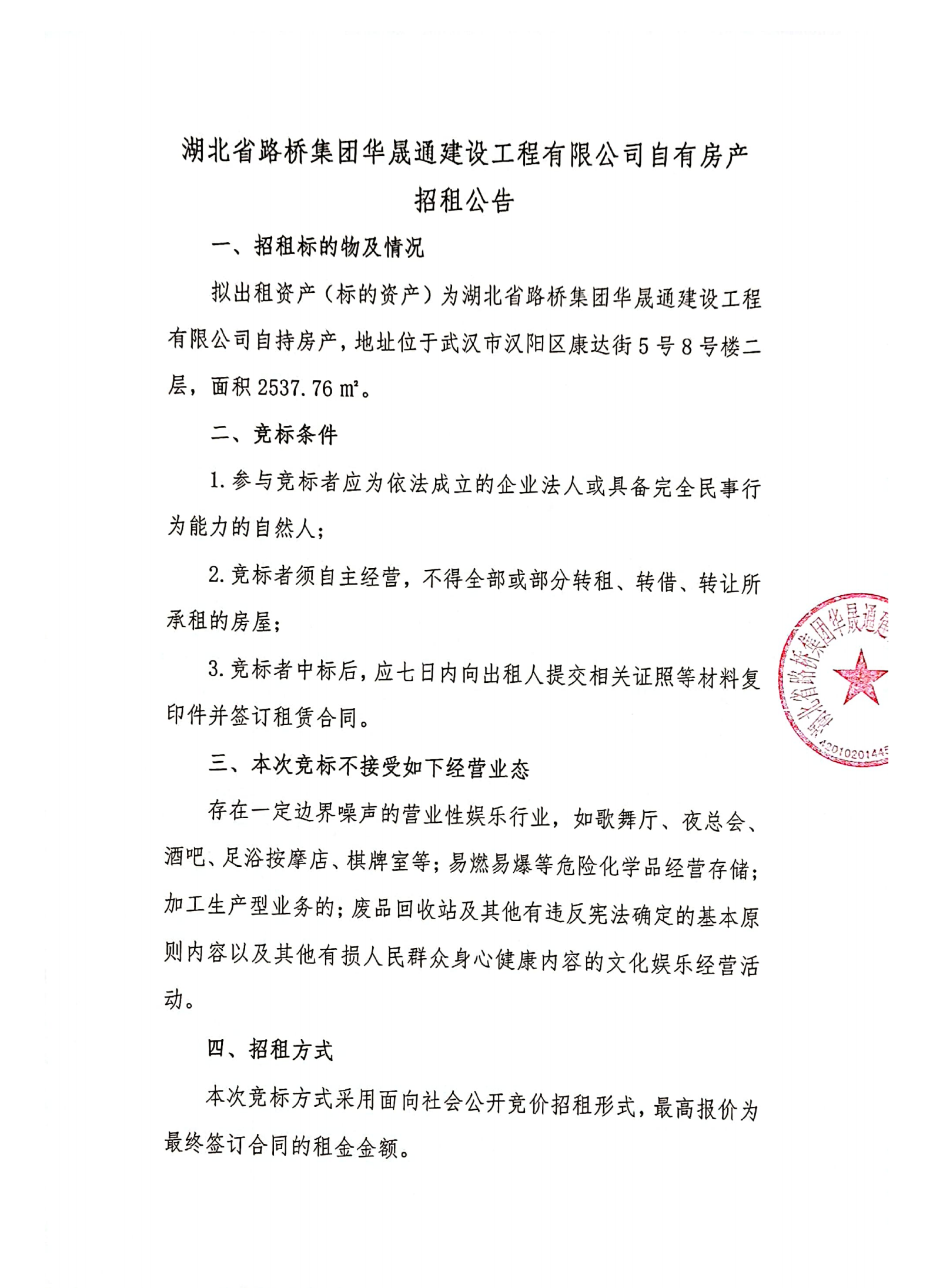 湖北省路橋集團(tuán)華晟通建設(shè)工程有限公司自有房產(chǎn)招租公告